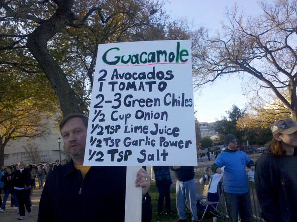 I wasn’t there, but I’ve really enjoyed seeing photos both of the general atmosphere of letting your freak flag fly, and of the excellent signs. My favs: