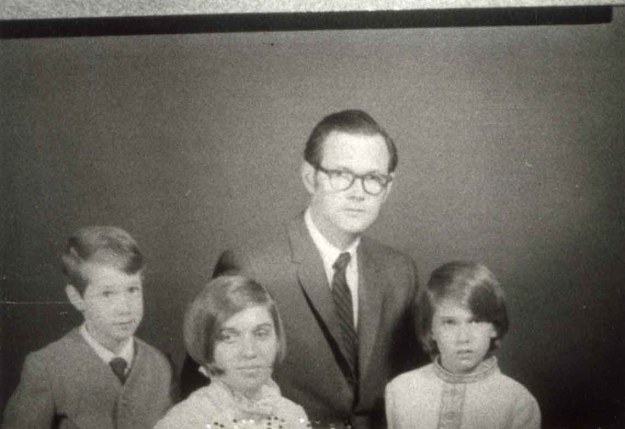 As for my folks, I just have to blame the photographer. They are/were both good looking people, and we were only ordinarily dysfunctional, not actual axe murderers, as portrayed in this photo. Had no one invented the concept of “Cheese!!” yet?