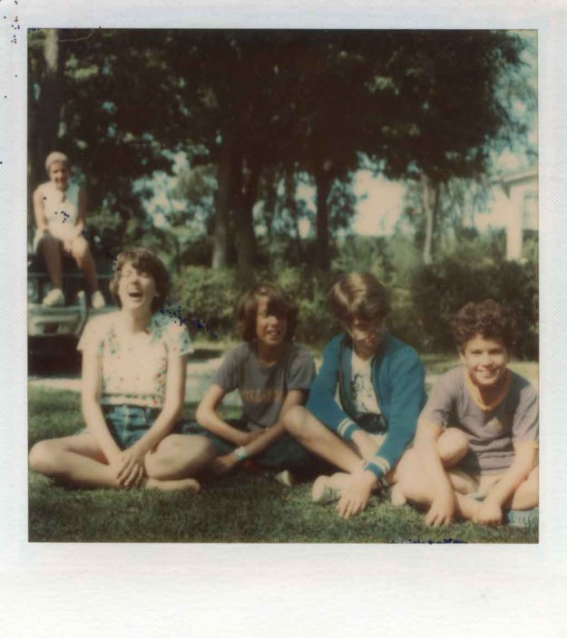 My wonderful husband organized a surprise party for my 50th birthday and my wonderful brother brought a bunch of hilarious family photos. Here, for example, don’t we look like the photo in the newspaper after one of us shoots the other three?