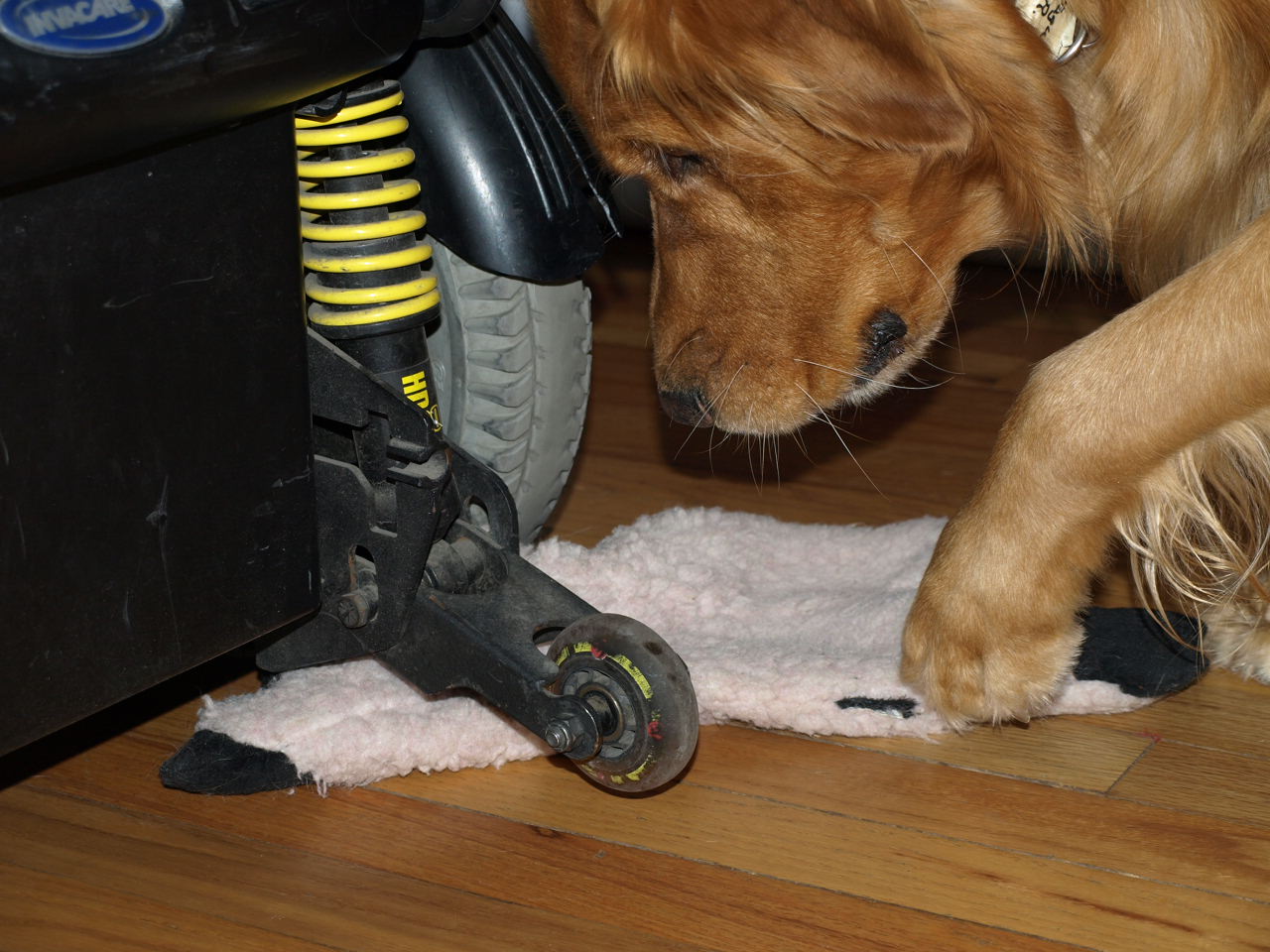 Dog photo du jour 1 Reply Saguaro rescues the fleece sheep from its ignominious flattening under Tim’s wheelchair. Like it? Hate it? Let me know! Click to share on X (Opens in new window) X Click to share on Facebook (Opens in new window) Facebook Click to email a link to a friend (Opens in new window) Email Click to share on Tumblr (Opens in new window) Tumblr Click to share on Pinterest (Opens in new window) Pinterest Like Loading... Related
