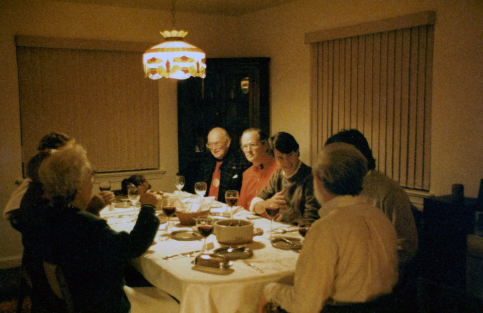 ← Previous Next → Christmas dinner circa 1983. Counterclockwise from front left: Edith and Clarence Blau (Ruth’s parents); Rodney North (David’s son); Clen Robertson (Peter’s father); Peter Robertson; Bruce Robertson; Jeff North (mostly hidden by) and David North. Like it? Hate it? Let me know! Share on X (Opens in new window) X Share on Facebook (Opens in new window) Facebook Email a link to a friend (Opens in new window) Email Share on Tumblr (Opens in new window) Tumblr Share on Pinterest (Opens in new window) Pinterest Like Loading...