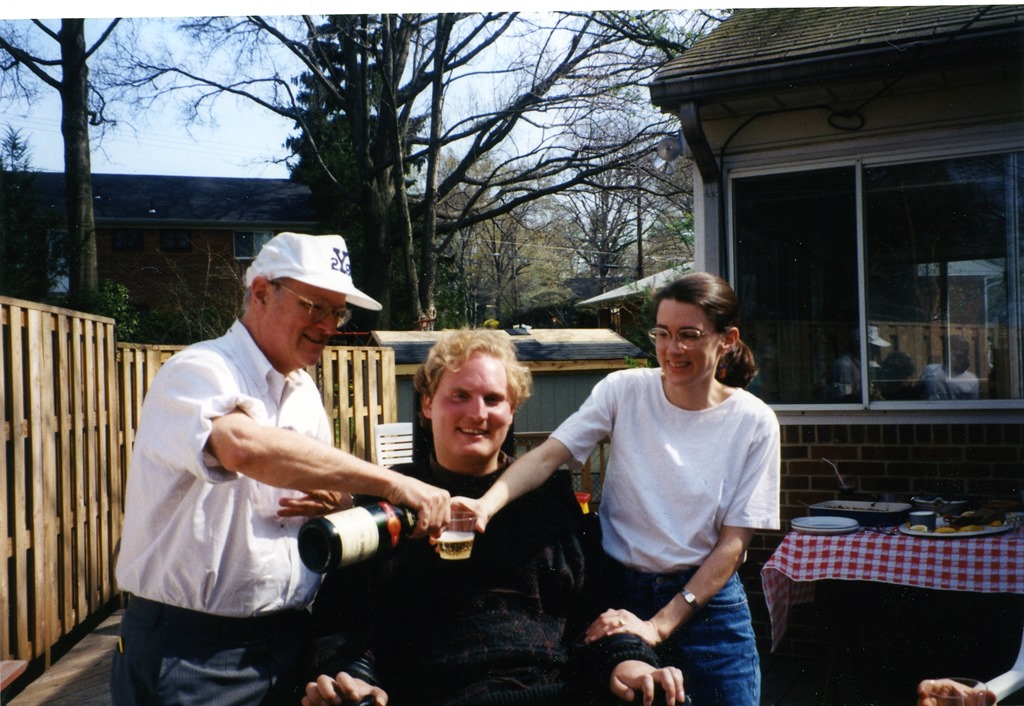[Amy’s note – my copy of the letter did not include the photos, but I think I’ve identified them and include them here. I have not included alt text as my father describes them below. In each, I am a mid-20s white woman with a really bad perm; my father is a late-40s white man in, yes, a pin striped suit.]