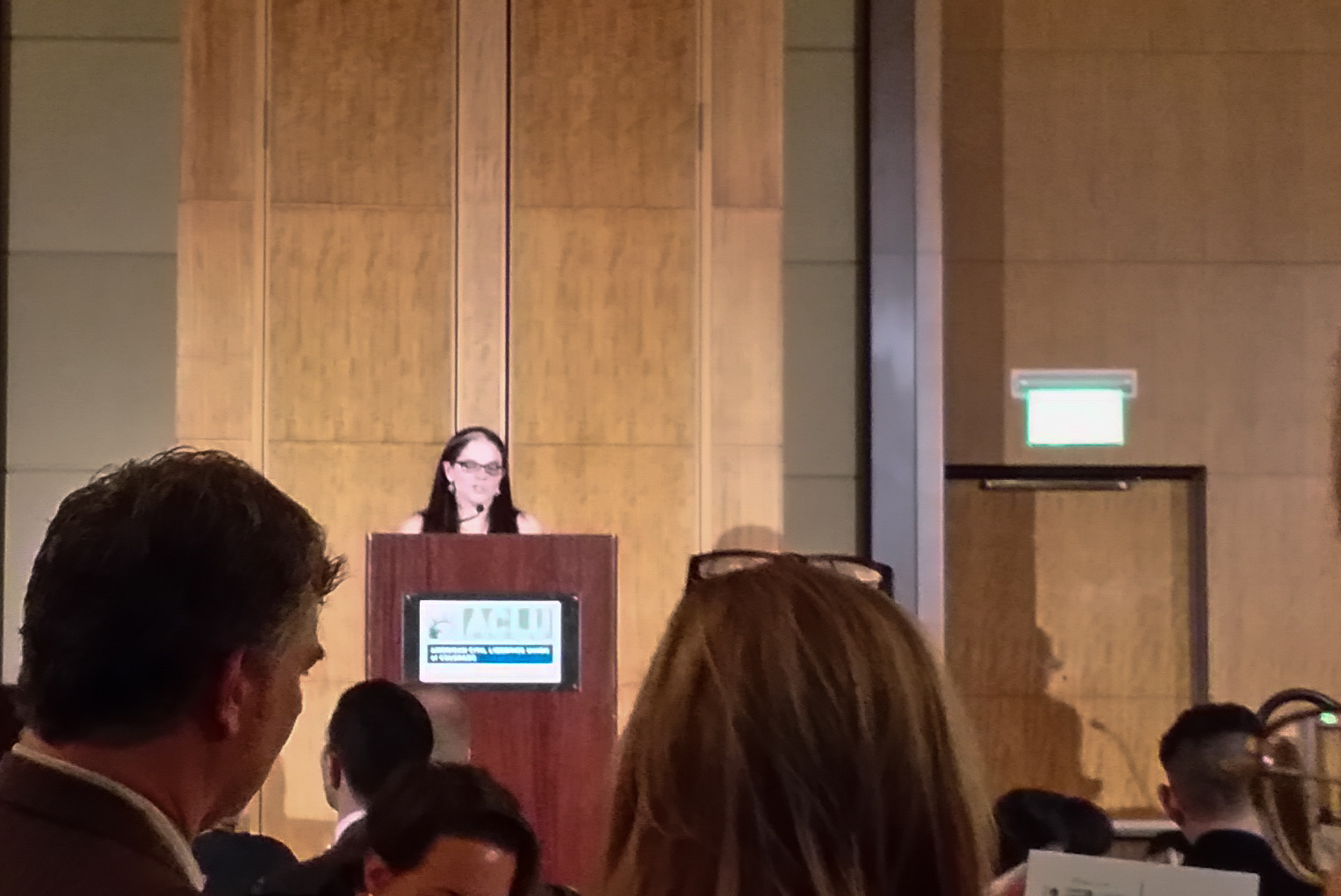 We went to the ACLU of Colorado’s annual dinner on Friday. This is always a very energizing experience — to be surrounded by friends and allies who are working hard (and/or donating boatloads of money) to protect civil rights and civil liberties. It was especially inspiring this year for a number of reasons. Our friend Laura Rovner was honored with an award for her amazing work on behalf of inmates in solitary confinement and other extreme conditions. We all cheered our behinds off for a trio of recent court victories in police abuse cases. And I enjoyed hanging with the next generation of civil rights advocates.